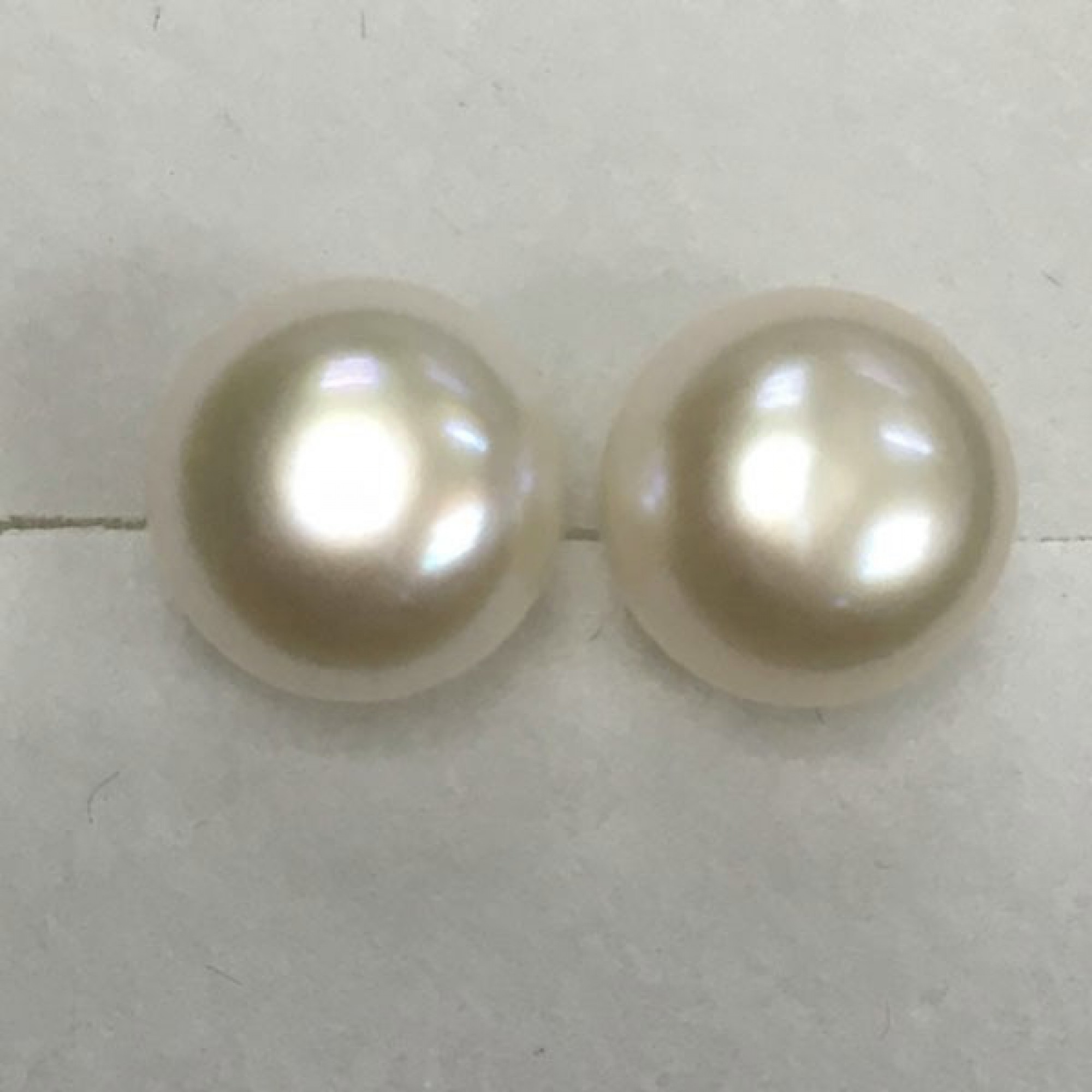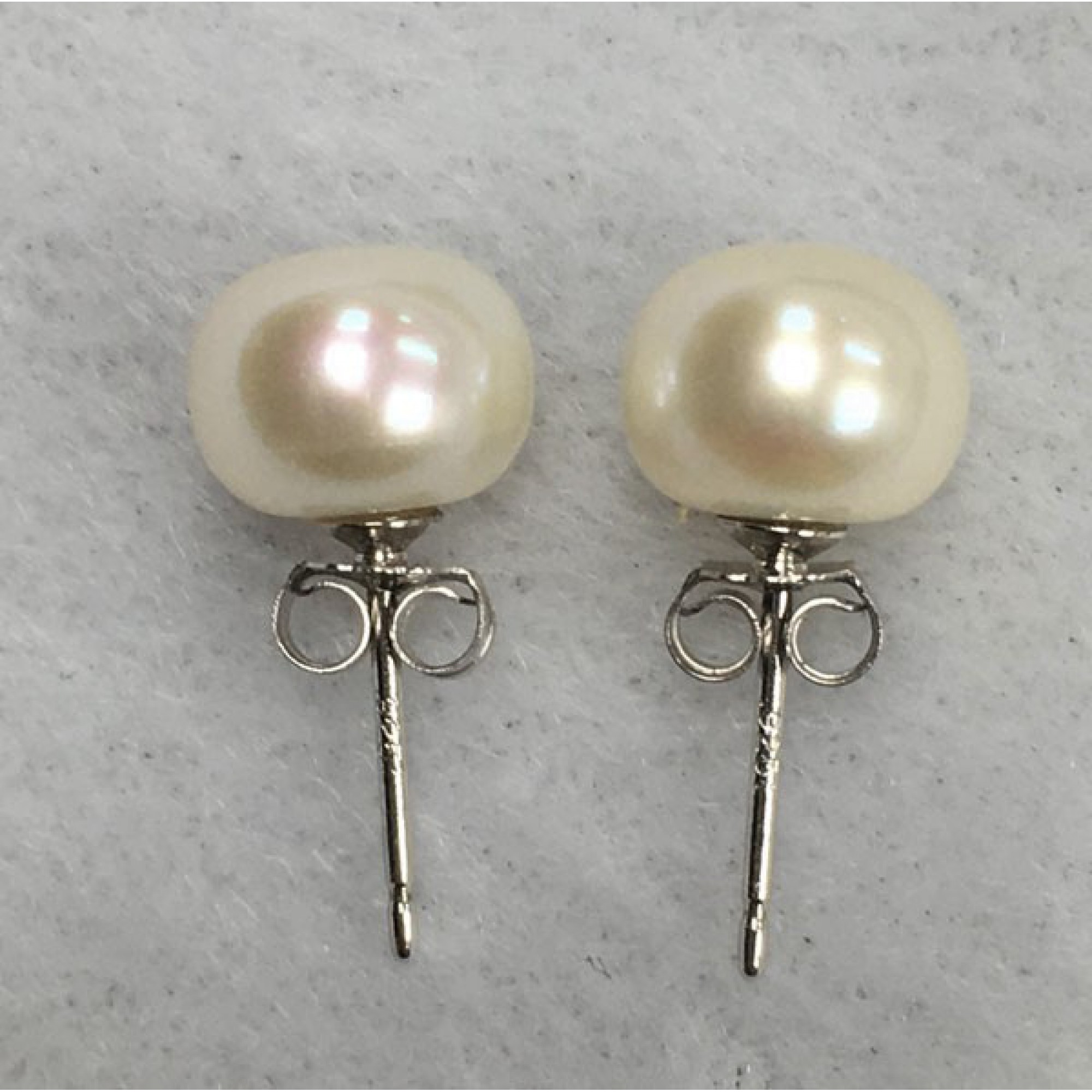 7.5-8mm 淡水珍珠白色面包珠925銀耳環
