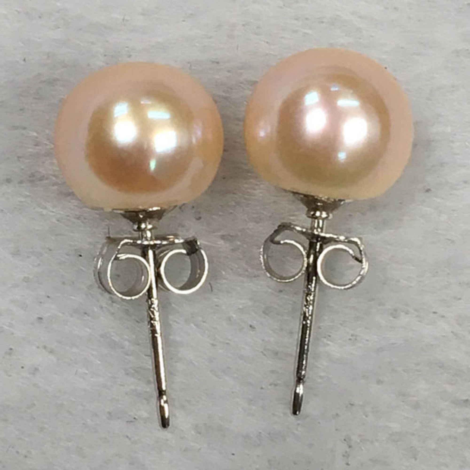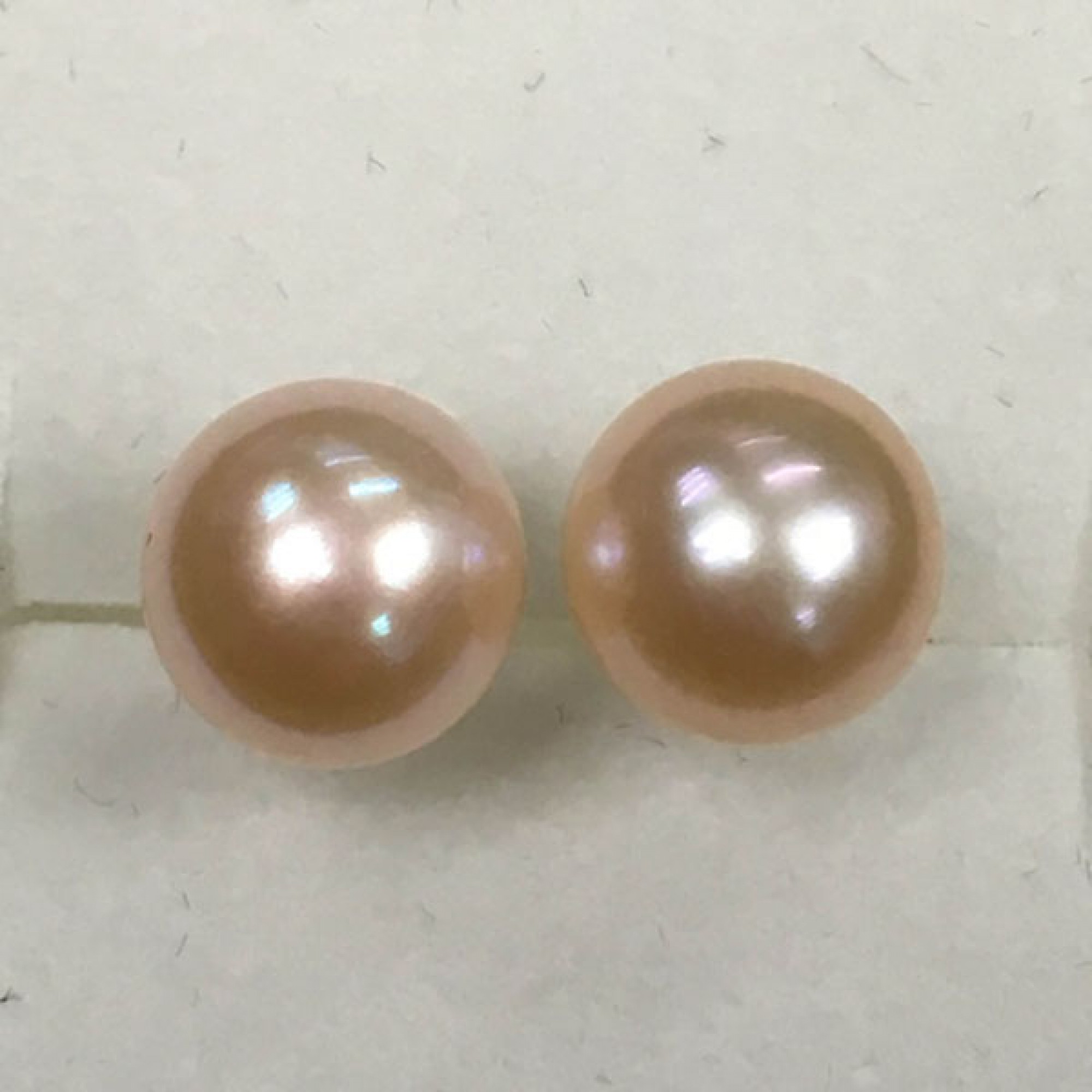 7.5-8mm 淡水珍珠粉紅色面包珠925銀耳環