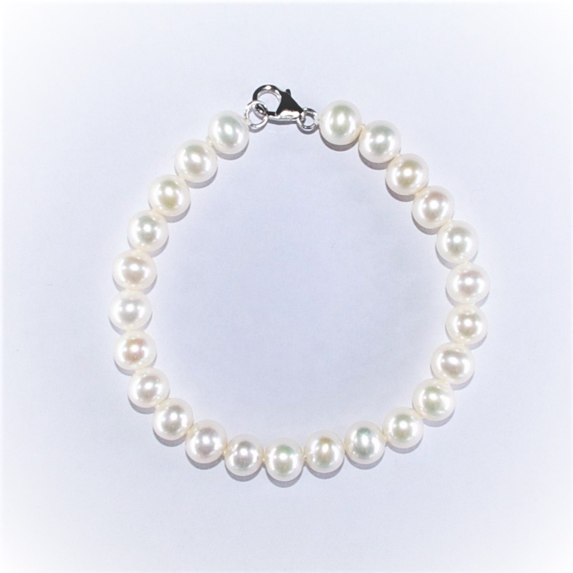 7.5" 7.5-8mm Freshwater Round Pearl Bracelet With 925 Silver Clasp.
